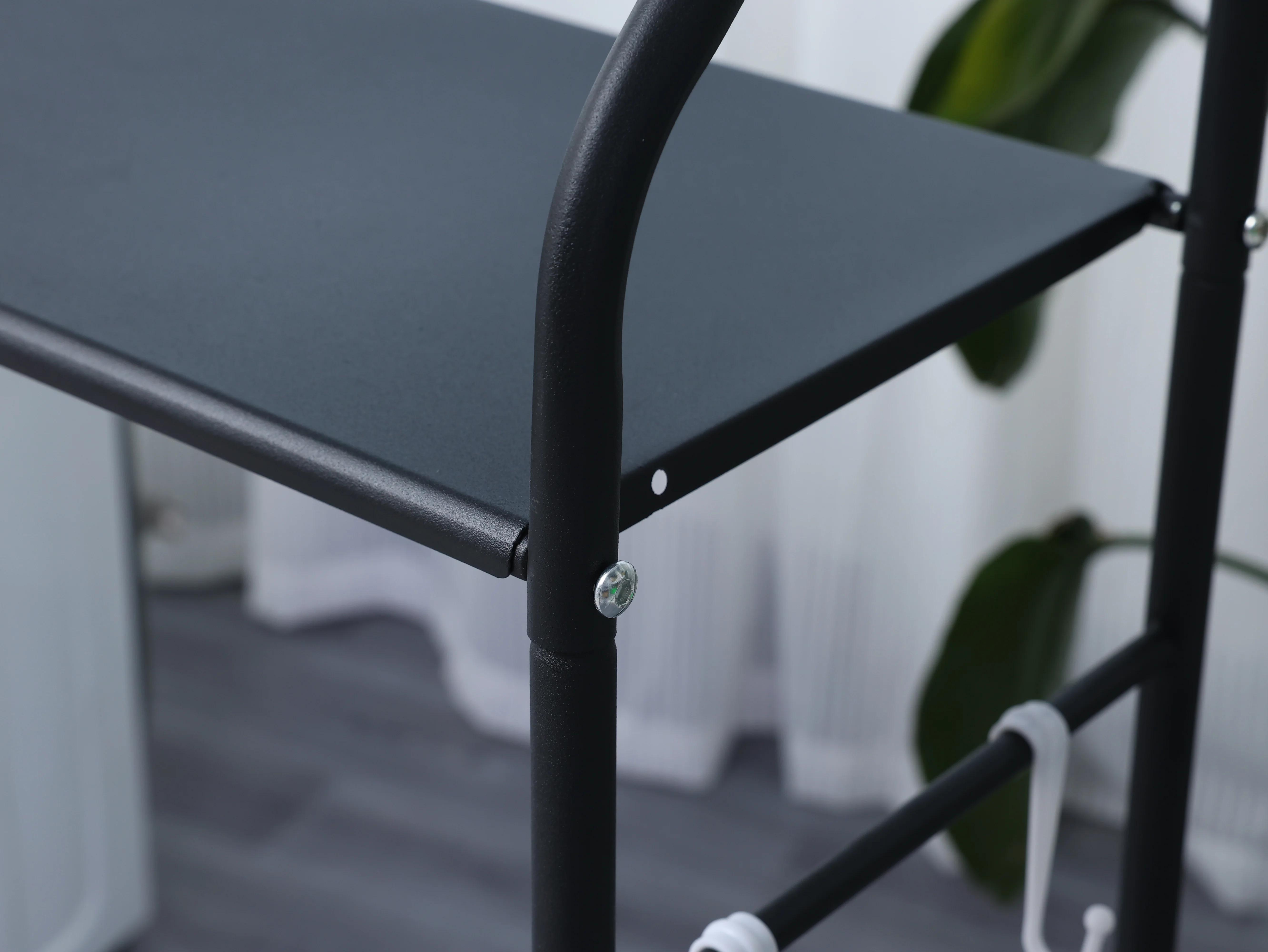 - Бічні гачки: Розумне включення бічних гачків забезпечує додатковий простір для підвішування таких предметів, як рулони паперу, рушники чи дрібні аксесуари, підвищуючи функціональність полиці.